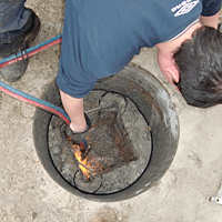 | Mit einem Schweißbrenner wurde die noch überstehende Bewehrung abgebrannt. |